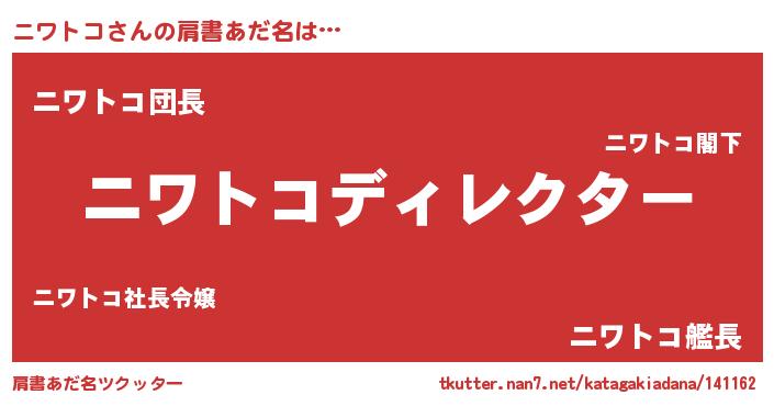 | ヒーロー風カッコイイあだ名 | 『幻影騎士ニワ』『究極戦士ニワトコ』 |
