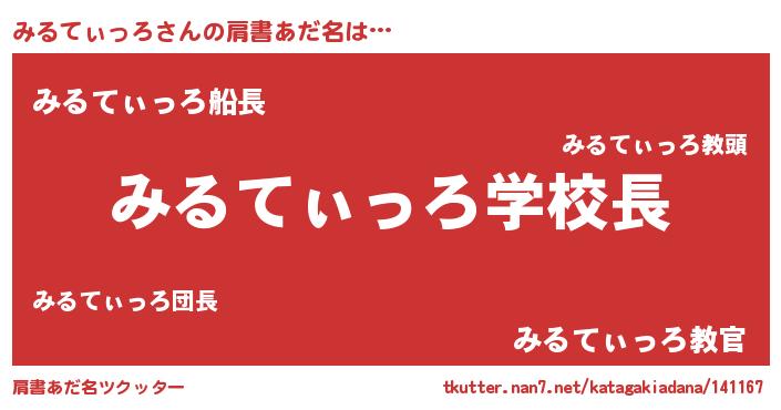 | ヘコむあだ名 | 『みるてぃっろ(苦笑)』『みるを』 |