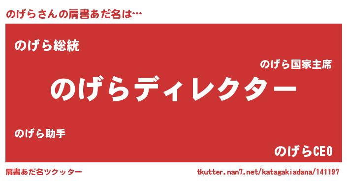 | 男性向けラノベタイトル風あだ名 | 『のげらに滅ぼされるだけの簡単なお仕事です』 |