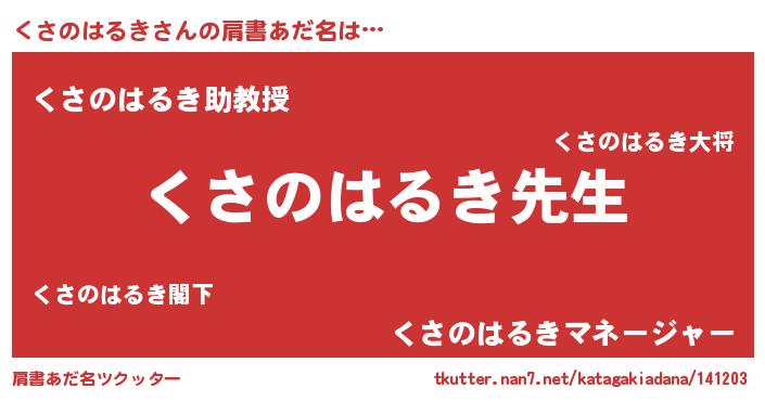 | ヘコむあだ名 | 『くさのはるき(小並感)』『くさを』 |