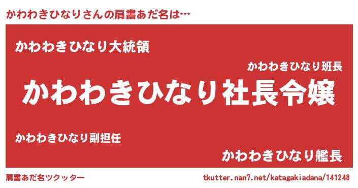 | ヒーロー風カッコイイあだ名 | 『スーパーカワワキヒナリ』 |