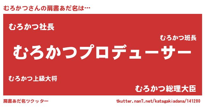 | 男性向けラノベタイトル風あだ名 | 『むろかつに滅ぼされるだけの簡単なお仕事です』 |