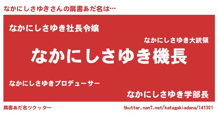 | ヒーロー風カッコイイあだ名 | 『スーパーナカニシサユキ』 |