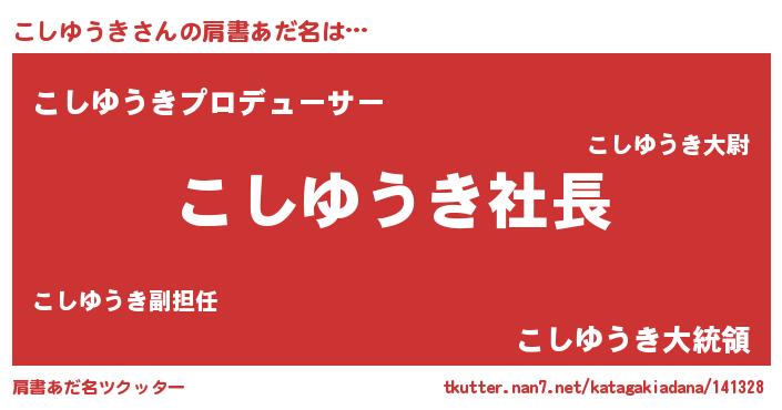 | ヒーロー風カッコイイあだ名 | 『スーパーコシユウキ』『ネオコシユウキ』 |