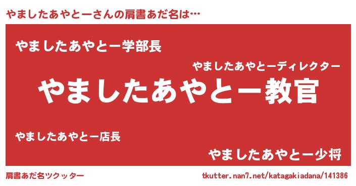| 男性向けラノベタイトル風あだ名 | 『この素晴らしい世界にやましたあやとーを!』 |