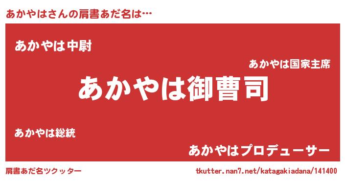 | 男性向けラノベタイトル風あだ名 | 『あかやはの憂鬱』『アカヤハスレイヤー』 |