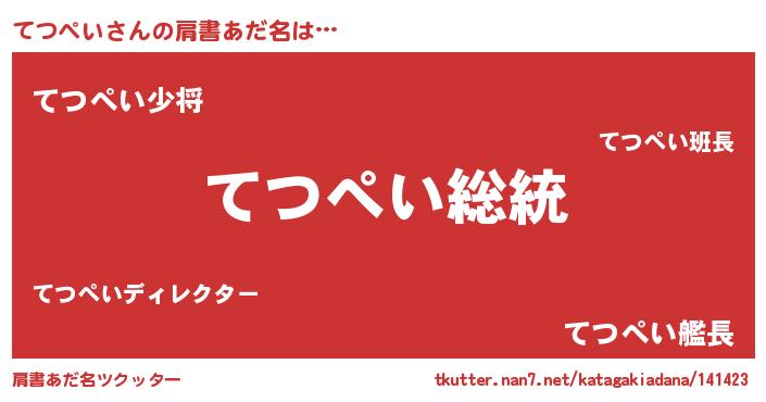 | 女子向けラノベタイトル風あだ名 | 『てつぺいなんてお断りですっ。』 |