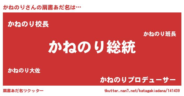 | 男性向けラノベタイトル風あだ名 | 『Re:かねのりから始める異世界生活』 |