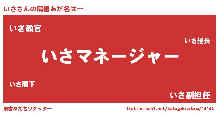 | 意味不明あだ名 | 『住所不定無職いさ(1歳)』『永久保存いさ』 |