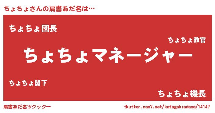 | 男性向けラノベタイトル風あだ名 | 『ちょちょに滅ぼされるだけの簡単なお仕事です』 |