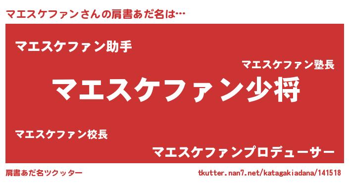 | ヒーロー風カッコイイあだ名 | 『慈愛の使者マエスケファン』 |