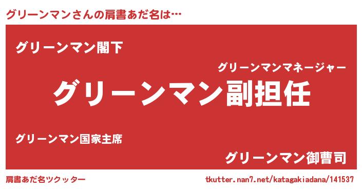 | 意味不明あだ名 | 『永久保存グリーンマン』 |