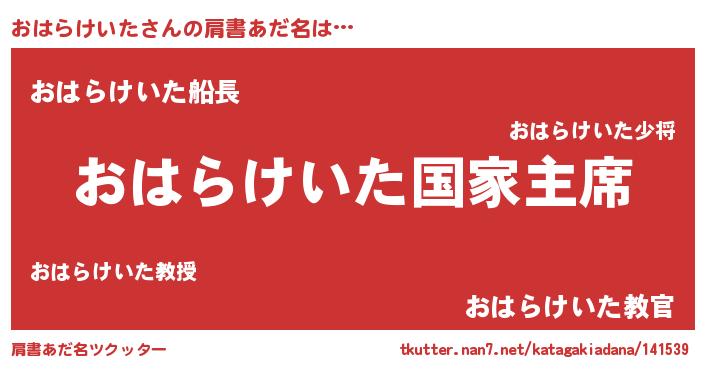 | 意味不明あだ名 | 『おはらけいたフォーエバー』 |