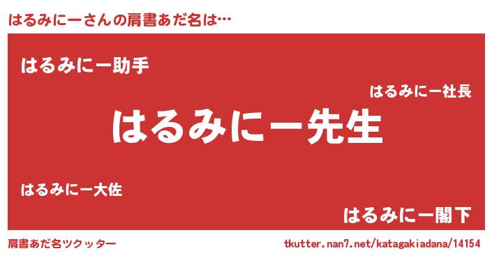 | 男性向けラノベタイトル風あだ名 | 『はるみにーという概念が存在しない退屈な世界 』 |