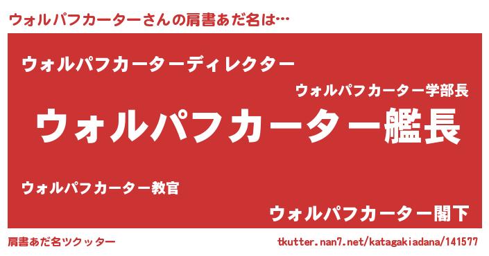 | 男性向けラノベタイトル風あだ名 | 『緋弾のウォルパフカーター』 |