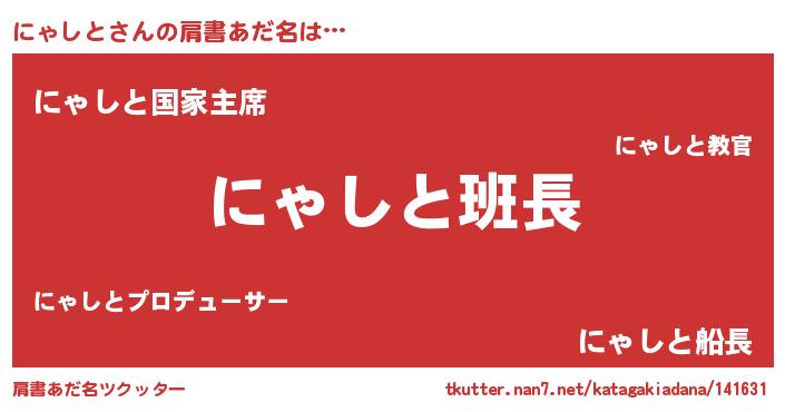 | ポケモン風あだ名 | 『ヒニャシト』『ニャシダネ』 |