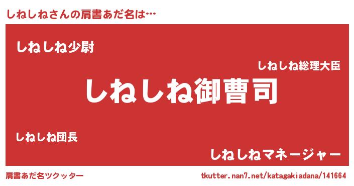 | ヘコむあだ名 | 『しねっふぃ~』『牛乳』『しねお』 |
