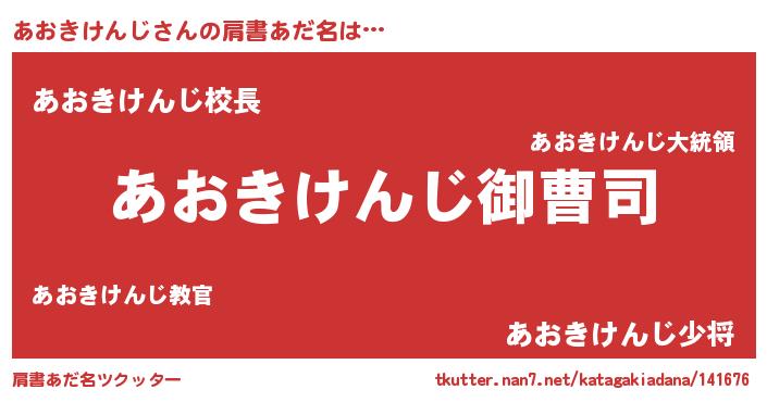 | 男性向けラノベタイトル風あだ名 | 『アオキケンジアートオンライン』 |