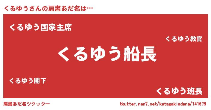| ヒーロー風カッコイイあだ名 | 『ウルトラくるゆうマン』『魔戒騎士クル』 |