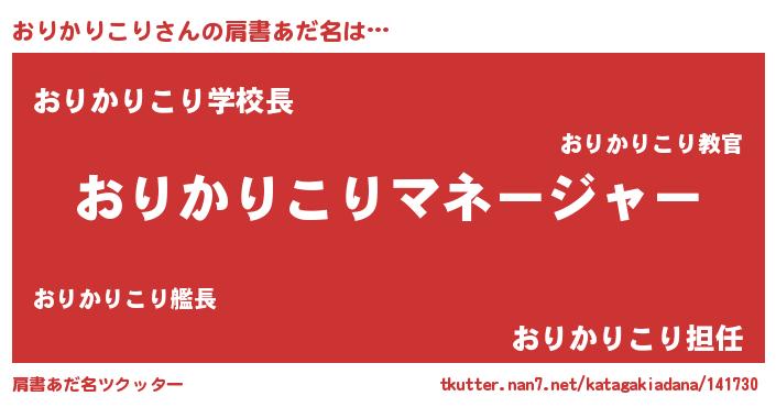 | ヒーロー風カッコイイあだ名 | 『慈愛の使者おりかりこり』 |