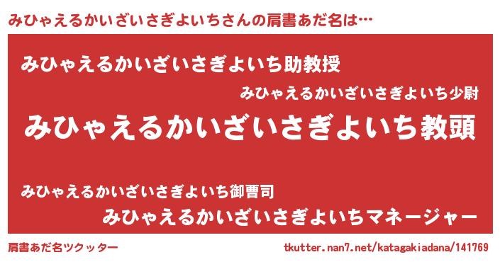 | ヘコむあだ名 | 『みひゃえるかいざいさぎよいち(笑)』 |