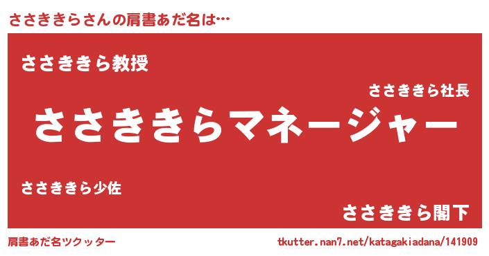 | 男性向けラノベタイトル風あだ名 | 『ささききらに滅ぼされるだけの簡単なお仕事です』 |