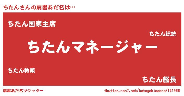 | 意味不明あだ名 | 『ちたんフォーエバー』『自称ちたん』 |