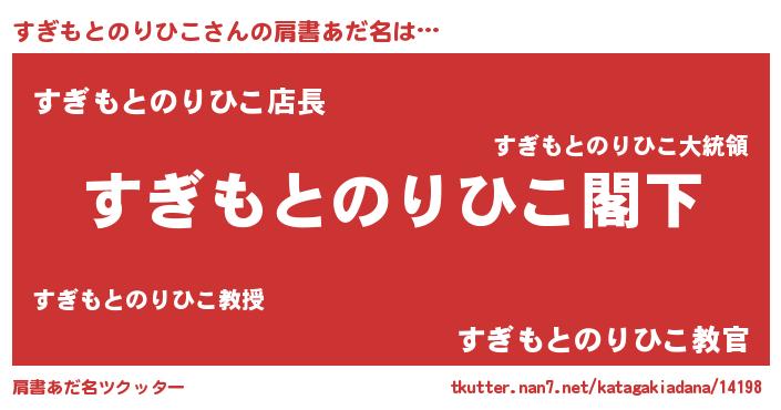 | 男性向けラノベタイトル風あだ名 | 『魔法科高校のすぎもとのりひこ』 |