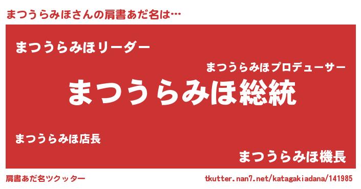 | 意味不明あだ名 | 『自称まつうらみほ』 |