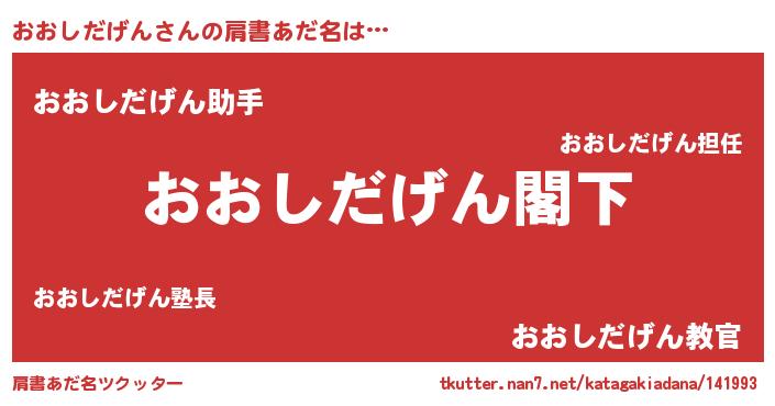 | 男性向けラノベタイトル風あだ名 | 『Re:おおしだげんから始める異世界生活』 |