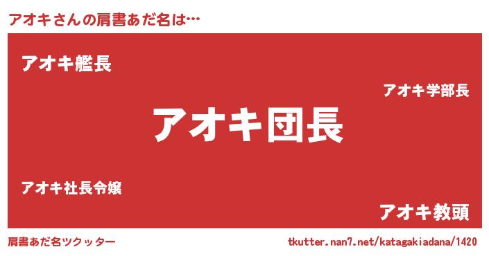 | ヘコむあだ名 | 『アオお』『アオキ(爆)』『なまこ酢』 |