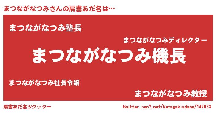 | 意味不明あだ名 | 『とにかく怪しいまつながなつみ』 |
