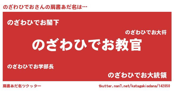 | 男性向けラノベタイトル風あだ名 | 『この素晴らしい世界にのざわひでおを!』 |