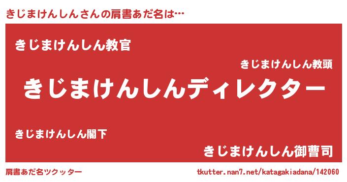 | 欧米人風あだ名 | 『アンジェラ・きじまけんしん』 |