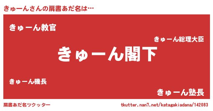 | ヒーロー風カッコイイあだ名 | 『超時空戦士キューン』『仮面キュダー』 |