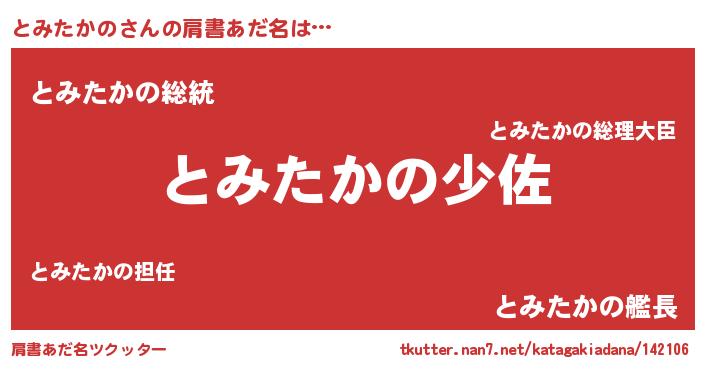 | ヒーロー風カッコイイあだ名 | 『究極戦士トミタカノ』『ネオトミタカノ』 |