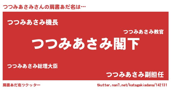 | 意味不明あだ名 | 『自称つつみあさみ』 |