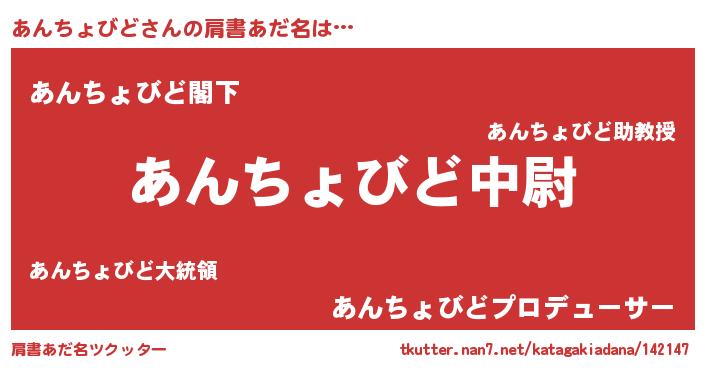 | 男性向けラノベタイトル風あだ名 | 『転生したらあんちょびどだった件』 |