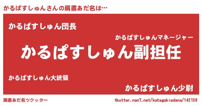 | ヘコむあだ名 | 『かるぱすしゅん(遠い目)』『かるお』 |