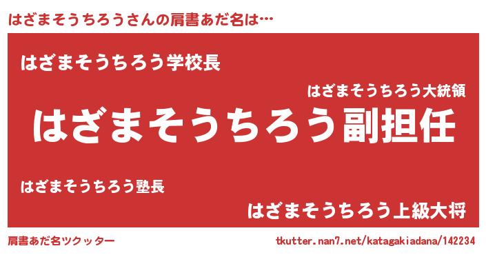 | 意味不明あだ名 | 『永久保存はざまそうちろう』 |