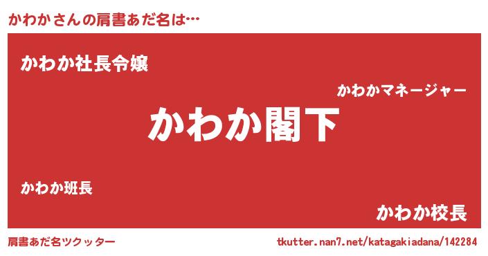 | 男性向けラノベタイトル風あだ名 | 『Re:かわかから始める異世界生活』 |