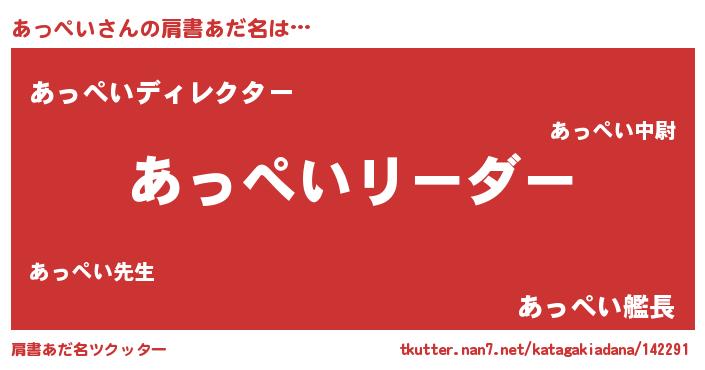 | ヘコむあだ名 | 『あっぷりん』『あっぺい(笑)』 |
