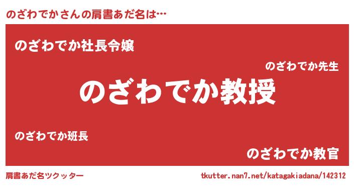 | ヘコむあだ名 | 『のざにー』『のざわでか(苦笑)』 |