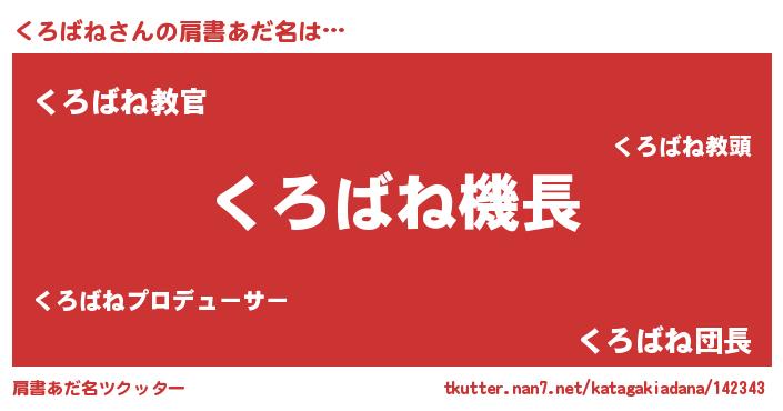 | 意味不明あだ名 | 『住所不定無職くろばね(91歳)』 |