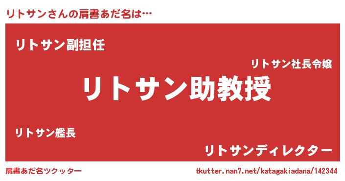 | ヒーロー風カッコイイあだ名 | 『正義の使者リトサン』『ネオリトサン』 |