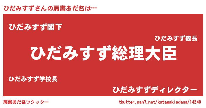 | ファンタジー風あだ名 | 『エターナルヒダミスズー』『ゼヒダトゥ』 |