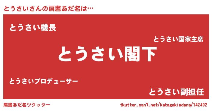 | 意味不明あだ名 | 『自称とうさい』『永久保存とうさい』 |