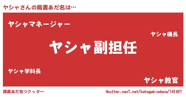 | ファンタジー風あだ名 | 『ヤシディッシュ』『ヴァルヤシーナ』 |