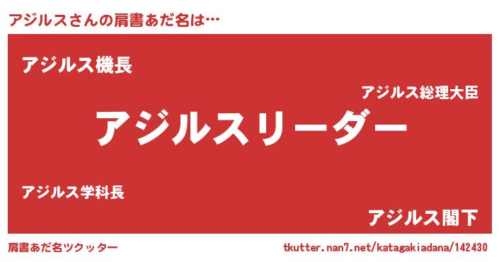 | ヒーロー風カッコイイあだ名 | 『銀牙騎士アジ』『サイバー戦士アジルス』 |
