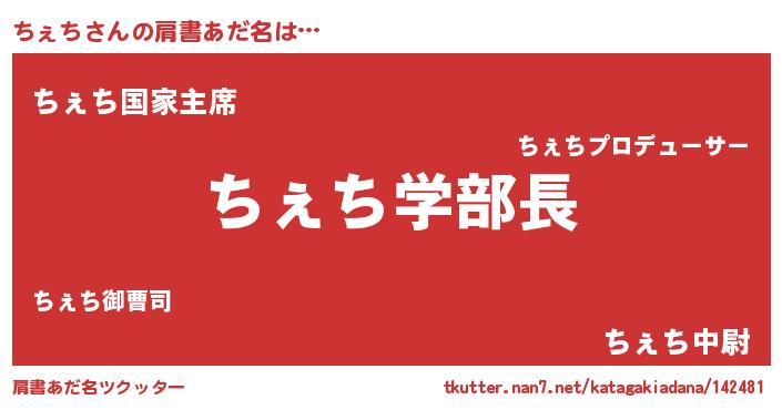 | 女子向けラノベタイトル風あだ名 | 『死神ちぇちの再婚』『ちぇち伯爵の花嫁』 |
